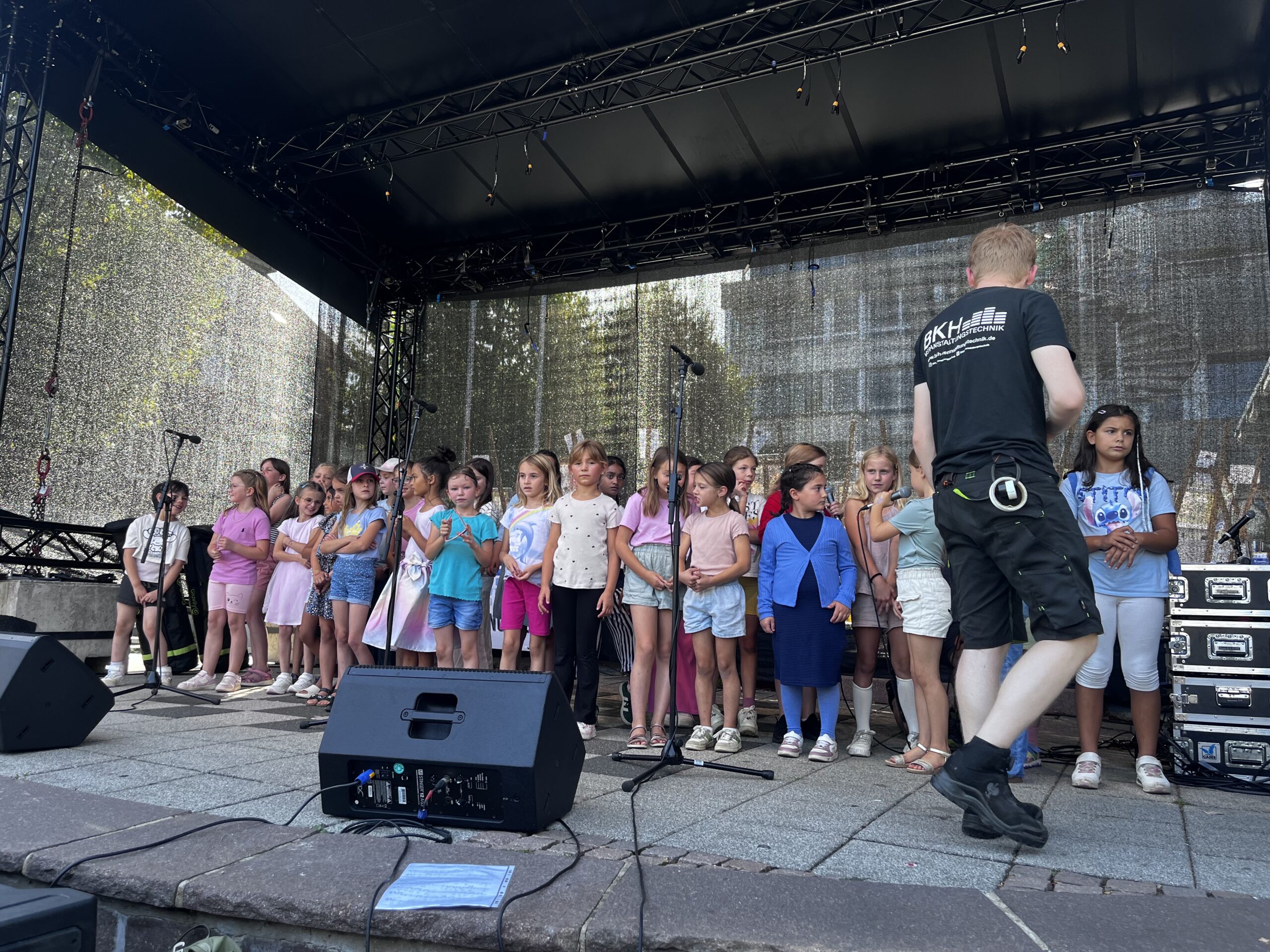 Am vergangenen Samstag fand in Haiger das große Familienfest statt, das zahlreiche Besucherinnen und Besucher mit einem bunten Rahmenprogramm anlockte. Neben vielen Mitmachaktionen, Aufführungen und kulinarischen Angeboten hatte auch die Mittelpunktgrundschule Haiger ihren Beitrag zu diesem besonderen Tag: Der Schulchor trat mit 28 Kindern auf und sorgte für einen musikalischen Höhepunkt.