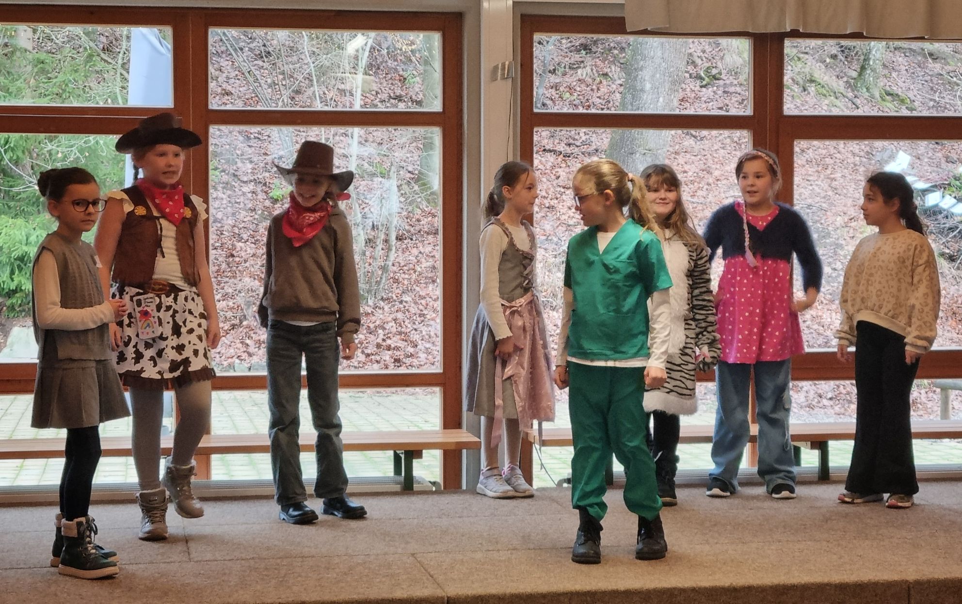 Am 8. Dezember besuchten rund 80 Kinder der 3. Schuljahre gemeinsam mit ihren Lehrkräften und Schulbegleitungen das Weihnachtsmärchen „Der kleine Ritter“ in der KuSch in Herborn. Pünktlich machten sich alle Klassen von der Schule auf den Weg. Unterwegs kam es jedoch durch einen kleinen Unfall einer Schülerin zu einer Verzögerung, sodass der geplante Zug leider verpasst wurde. Geduldig warteten alle Kinder auf den nächsten Zug nach Herborn. Nach der Ankunft in Herborn ging es mit viel Tempo zu Fuß weiter – etwa zwei Kilometer bis zur KuSch. Besonders schön war, dass das Team der KuSch den Beginn der Vorstellung um fünf Minuten verschob. So konnten alle Kinder rechtzeitig ihre Plätze einnehmen und voller Vorfreude der Aufführung entgegenblicken. Das Theaterstück „Der kleine Ritter“ erzählte die Geschichte eines jungen Ritters, der beweisen möchte, dass Mut nicht nur aus Stärke besteht, sondern vor allem aus Freundschaft, Hilfsbereitschaft und Vertrauen. Auf seinem Weg erlebt er spannende Abenteuer, begegnet ungewöhnlichen Figuren und meistert Herausforderungen mit Köpfchen und Herz. Die liebevoll gestalteten Kostüme, das abwechslungsreiche Bühnenbild und humorvolle Szenen begeisterten die Kinder und sorgten immer wieder für Lachen und Mitfiebern. Gebannt verfolgten die Schülerinnen und Schüler das spannende und kindgerecht inszenierte Theaterstück. Nach dem Ende der Vorstellung traten alle gemeinsam den Rückweg zum Bahnhof an. Pünktlich erreichten die Kinder schließlich wieder den Haigerer Bahnhof und kamen wohlbehalten zu Hause an. Ein erlebnisreicher und gelungener Ausflug, der allen noch lange in Erinnerung bleiben wird.