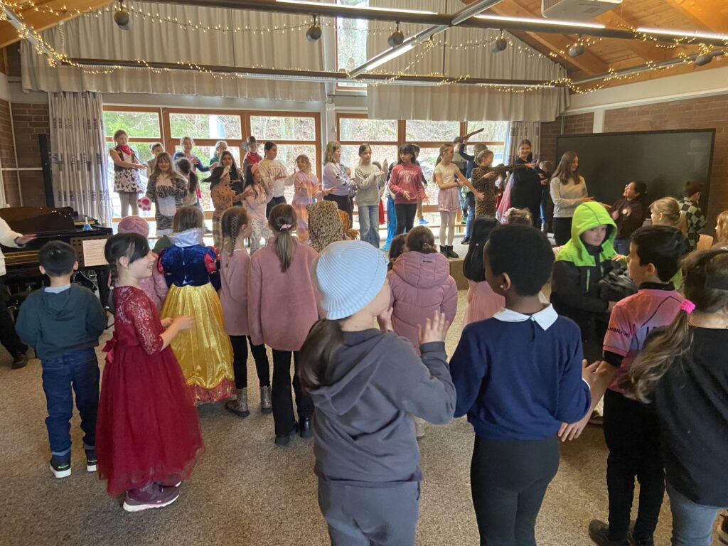Die jungen Sängerinnen und Sänger hatten in den vergangenen Wochen fleißig geprobt und präsentierten auf der Bühne ein Lied, das mit viel Freude und Begeisterung vorgetragen wurde. Das Publikum bedankte sich mit großem Applaus, und die Kinder konnten spüren, wie sehr ihr Auftritt wertgeschätzt wurde. Zahlreiche Eltern, Geschwister und Begleitungen waren mit dabei und stärkten den Chorkindern den Rücken – ein schönes Zeichen für die Verbundenheit innerhalb unserer Schulgemeinschaft.